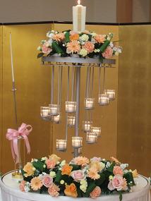 センターの大きなキャンドルは灯した火が降りてくるタイプ。