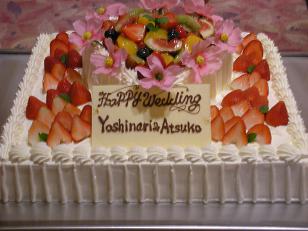 ここ数年では一般的なスクエアタイプのウエディングケーキ。